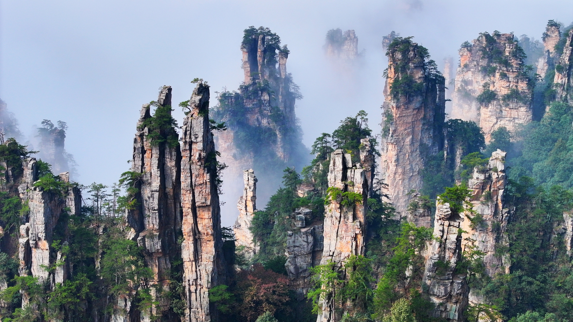ஜாங்ஜியாஜியே சுற்றுலா பகுதியில் அழகான மூடுபனி காட்சிகள்