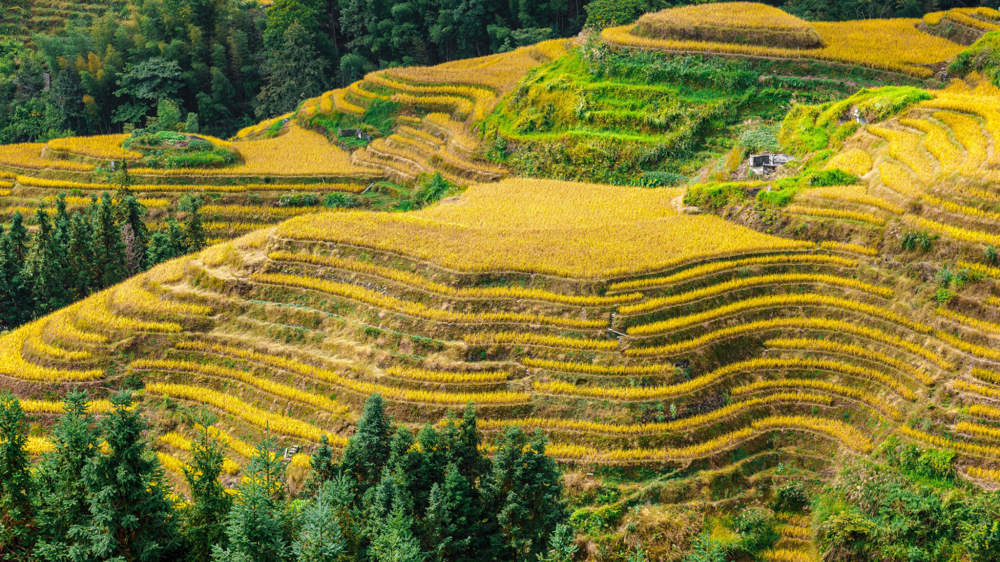 குவாங்சியில் மொட்டை மாடி வயல்களின் அறுவடை காட்சிகள்