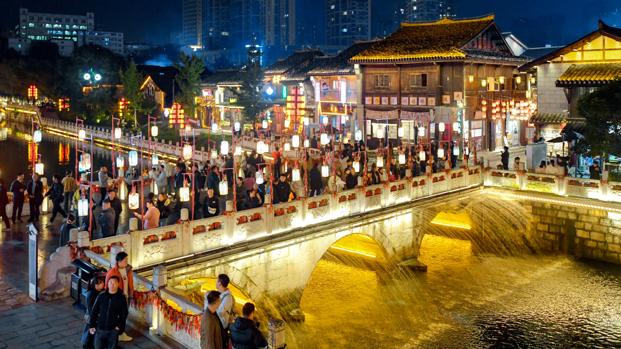 குய்சோவில் உள்ள பண்டைய நகரின் இரவு காட்சிகள்