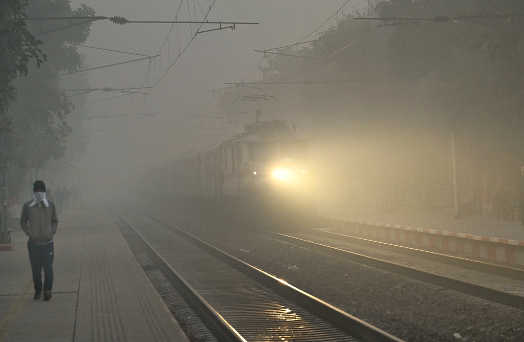 டெல்லி நகரின் அடர்த்தியான புகை மூட்டம் சூழ்ந்ததால், அதன் காற்று மாசுபாடு ஆபத்தானதாக மாறியுள்ளது
