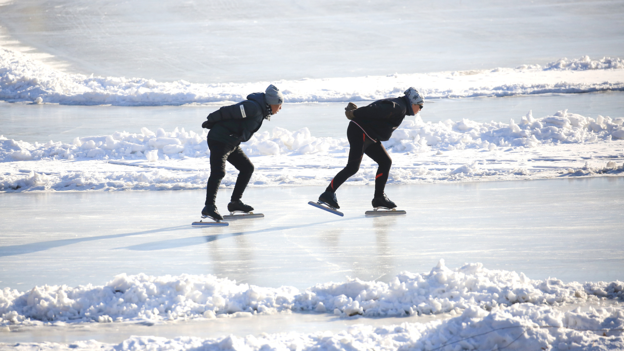 கடும் குளிரில் பனிச்சறுக்கு விளையாடிய மக்கள்