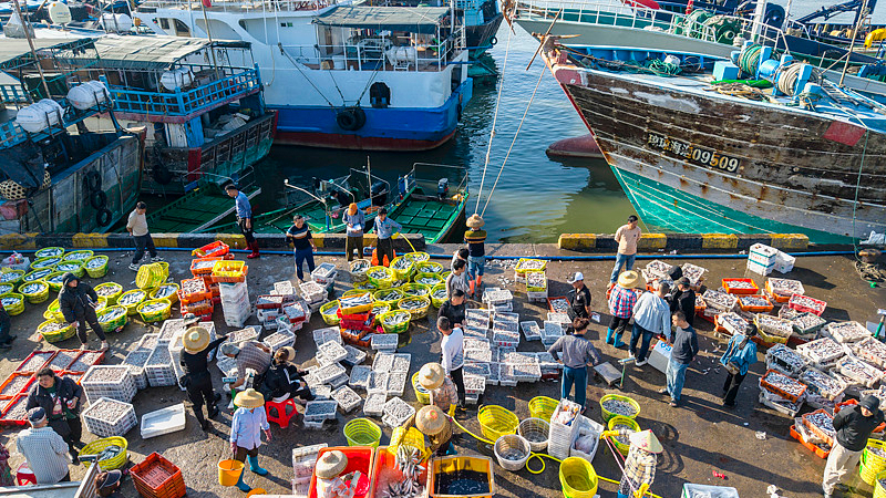 ஹாய்னானில் சுறுசுறுப்பாக நடைபெறும் மீன்கள் விற்பனை
